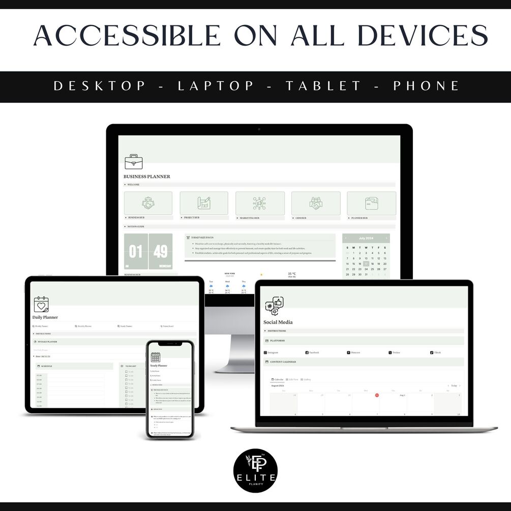 Sage Green Notion Template Business Planner - Minimalist & Aesthetic